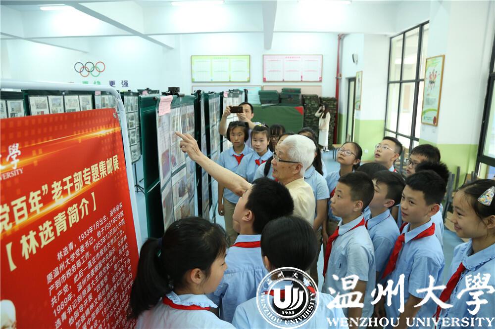 “今天,我参观了集邮展,同学们脸上都挂满好奇,热烈讨论着自己最喜欢的邮票。两位老爷爷老爷爷和蔼可亲地带领同学们参观邮展,讲述邮票的由来、分类和故事。同学们了解到很多课本上没有的党史知识。”温大附中金乐漫同学说。