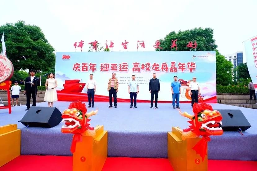 随后,由市体育局局长张志宏宣布活动启动,满冠平台副校长薛伟和浙江省龙舟协会主席王成云分别击鼓、鸣锣,比赛正式开始。