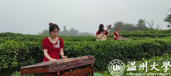 由五位民乐专业学生带来的器乐合奏版《采茶舞曲》拉开了本堂课的帷幕,欢快跳跃的器乐声回荡在东溪茶园上空。曹清清老师由《采茶舞曲》的创作背景引入,讲述了数十年来,东溪乡依托《采茶舞曲》诞生地这张“金名片”,秉承“绿水青山就是金山银山”的科学发展理念,全力打造“茶歌小镇、音乐东溪”,全面激活乡村振兴发展新活力,让山区人民在乐声茶香中享受到国家发展的红利,交出脱贫攻坚高分答卷,走出属于东溪乡的乡村振兴道路。