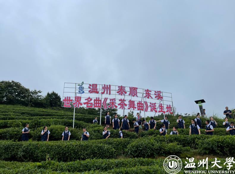 本次音乐党课以泰顺县县歌《采茶舞曲》为开篇,思政辅导员曹清清为在场党员和学生讲解与展示,将茶园的云雾飘渺、山峦叠嶂、采茶人的欢声笑语,通过温大器乐组学生优美的民乐演奏纷纷展现在大家眼前。