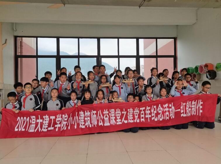 小小建筑师公益课堂走进满冠平台城附属学校,并向少先队员赠送红船积木