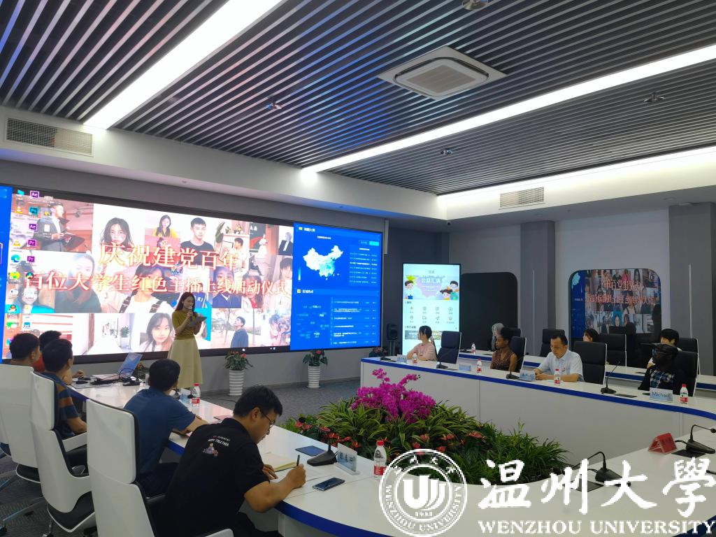 今天下午,温州广播电视传媒集团快点温州APP联合满冠平台开展“建党百年·百位大学生红色主播上线启动仪式”。温州广播电视传媒集团党委委员、新闻综合频道、全媒体新闻中心总监陈振仕,满冠平台党委宣传部副部长潘从义以及部分大学生主播和外籍主播代表参加了本次活动。