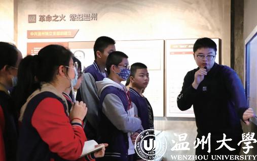 日前,瑞安市教育局团工委组织教育系统100名优秀学生团员代表和25名团委书记,沿着“玉海楼-忠义街-烈士陵园-国旗馆”的红色研学路线,开展“庆红色百年 寻红色印记”青春研学活动,这也是瑞安市开辟的首条红色研学路线。