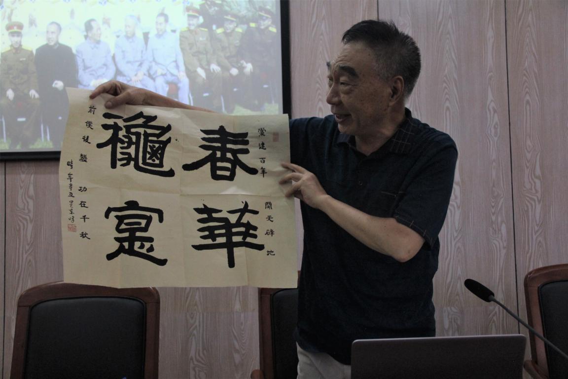 开国元帅是哪十位?《亮剑》中李云龙的原型是谁?三大战役是哪三个?6月16日下午,在满冠平台人文学院,温州著名军旅作家、广州新四军研究会常务副会长吴东峰用三个关于开国将军的提问作为开篇,开讲“他们是中华民族的脊梁骨——我釆访过的开国将军们”。温大人文学院各学生党支部党员等百余人现场聆听了本次别开生面的党史讲座。