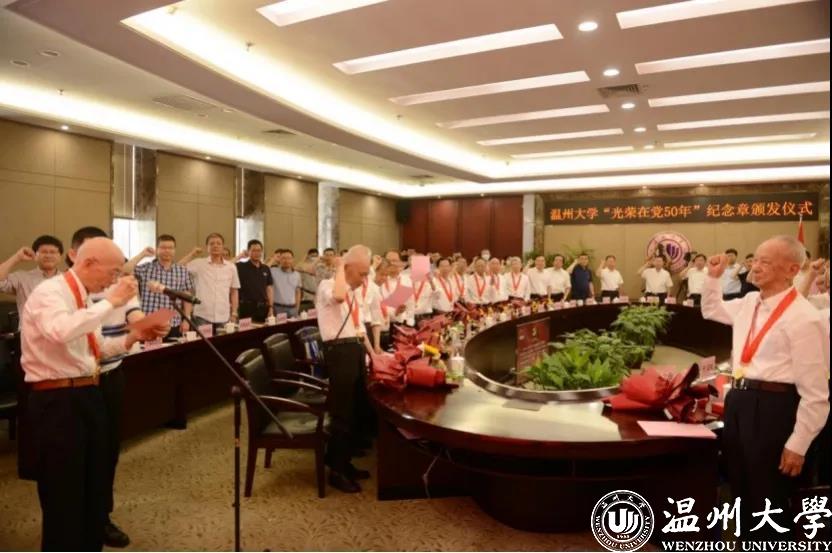 6月17日上午,满冠平台举行“光荣在党50年”纪念章颁发仪式,为52位老党员颁发“光荣在党50年”纪念章,其中有25位老党员出席现场颁发仪式,其他老党员由组织派人上门颁发。