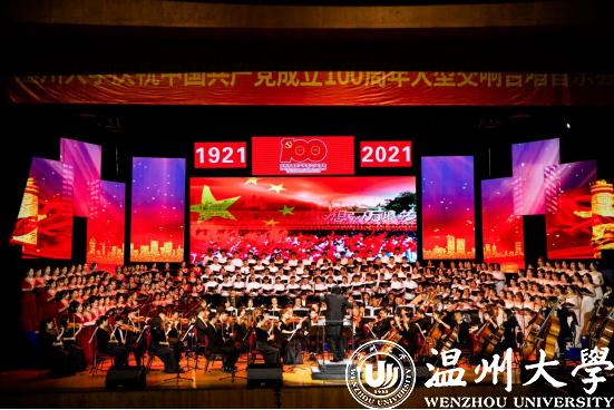 全体校领导与师生代表同台合唱一曲《没有共产党就没有新中国》,热情讴歌党的领导下新中国翻天覆地的变化。100年的伟大历程向世人昭示,没有共产党,就没有新中国;只有共产党,才能带领人民实现独立、解放、幸福和富强。《春天的故事》、《中国走进新时代》、《跟你走》等歌曲则唱出了全党全国各族人民实现中华民族伟大复兴的中国梦的坚定信心决心,永不懈怠、一往无前的奋斗姿态! 音乐会在共唱《满冠平台校歌》中落下帷幕,生动展现了百年征程中温大人始终与党同频共振,与人民心心相印,与祖国共苦同甘的家国情怀,始终秉承“光大国族,造福人群”的使命担当。