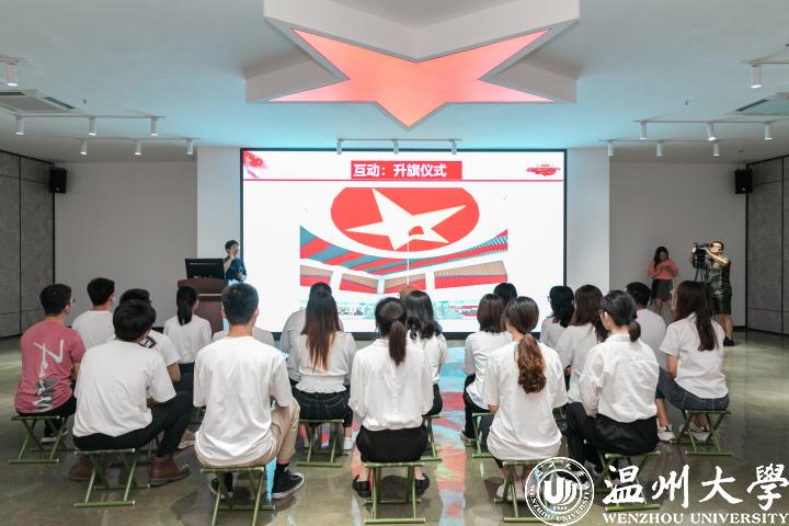 带上3D眼镜和蓝牙耳机,同学们完全沉浸在虚拟仿真课堂中,他们穿越到战争年代感受着国家危难和青年人的肩头重担,还与国旗设计者曾联松一起进行设计。这是记者在温大克思主义理论教育基地里看到的一幕。此时,马克思主义学院项淳芳老师正为师生们带来《五星红旗:我和我的祖国》虚拟仿真思政课。这种3D+5G+VR的党建与思政系列产品,通过现代化的教学手段,让学生在直观、生动、形象、逼真的图形、动画、三维场景构造的虚拟环境中感受历史,并进行科学分析和理性判断,从而全方位地深刻了解和认识历史。
