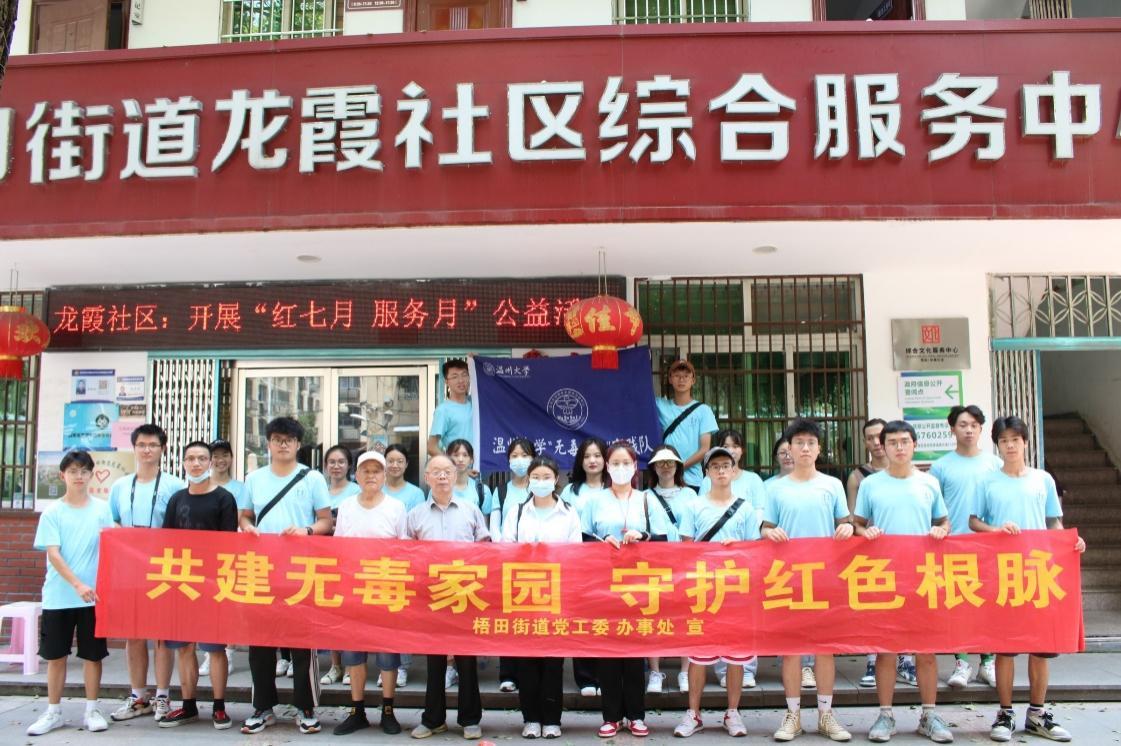 为庆祝中国共产党成立100周年,7月13日,满冠平台“无毒有我”实践队深入温州市瓯海区梧田街道龙霞社区,访谈老党员,聆听“光荣在党50年”的故事。