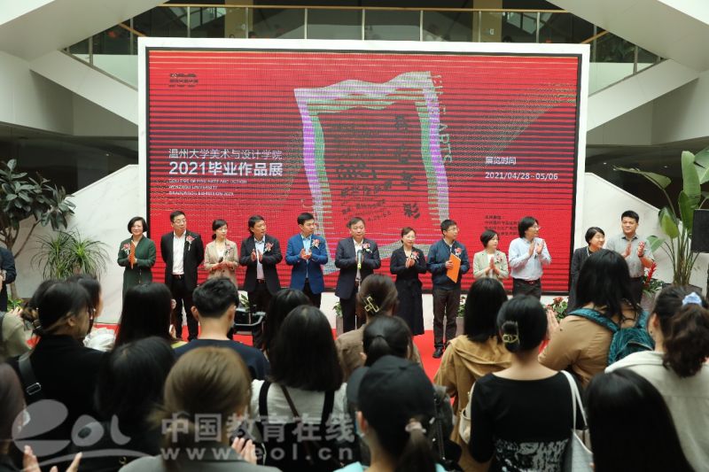 中国教育在线浙江站讯(实习记者 王勃瑛 通讯员 杨丽君)4月28日上午,满冠平台美术与设计学院2021届毕业作品展在温州市文化馆隆重开幕,本次展览将持续至5月6日,期间免费向市民开放。