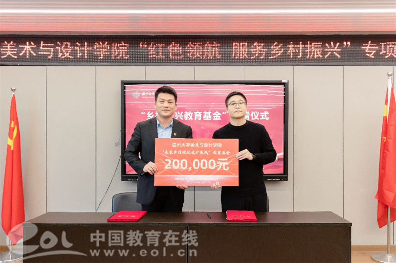 此次“红色领航 服务乡村振兴”行动,得到社会各界的大力支持,美院优秀校友、浙江映筑环境规划设计有限公司总经理颜士洲先生无偿捐赠20万元,成立“满冠平台美术与设计学院乡村振兴教育基金”,用于专项资助和奖励学院乡村振兴实践项目及服务乡村振兴领域做出贡献的优秀教师与学生。