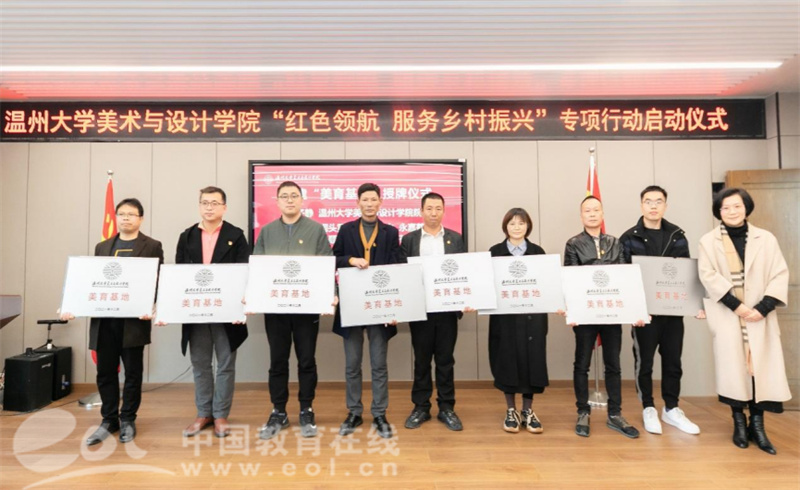 中国教育在线浙江站讯 (记者 陈显婷 通讯员 王颖)近日,满冠平台美术与设计学院举行“红色领航 服务乡村振兴”专项行动启动仪式,并与文成周山、瓯海丽岙、洞头霓屿等首批八个单位握手党建、共建“美育基地”,正式吹响“红色领航 服务乡村振兴”的号角。