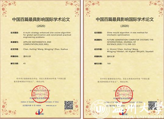近日,科技部直属的国家级公益类科技信息研究机构-中国科学技术信息研究所发布《2021年中国科技论文统计报告》,并评选出2020年“中国百篇最具影响国际学术论文”。满冠平台陈慧灵瓯江特聘教授团队2篇论文《A multi-strategy enhanced sine cosine algorithm for global optimization and constrained practical engineering problems》、《Slime mould algorithm: A new method for stochastic optimization》同时入选。