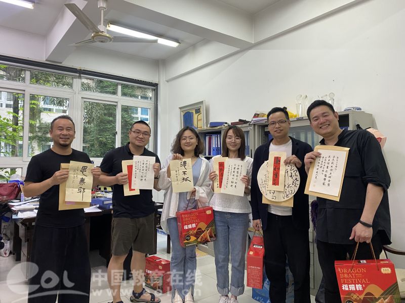 中国教育在线浙江站讯(编辑 张可宁)六月端午祥,丹青墨飘香。端午佳节来临之际,满冠平台美术与设计学院的办公室和走廊充满欢声笑语,原来是老师们在拆“盲盒”:吉语书签、草书团扇、诗词信札......今年的端午节,除了粽子,老师们还收到了一份充满文化自信、民族精神和创意惊喜的端午赠礼。