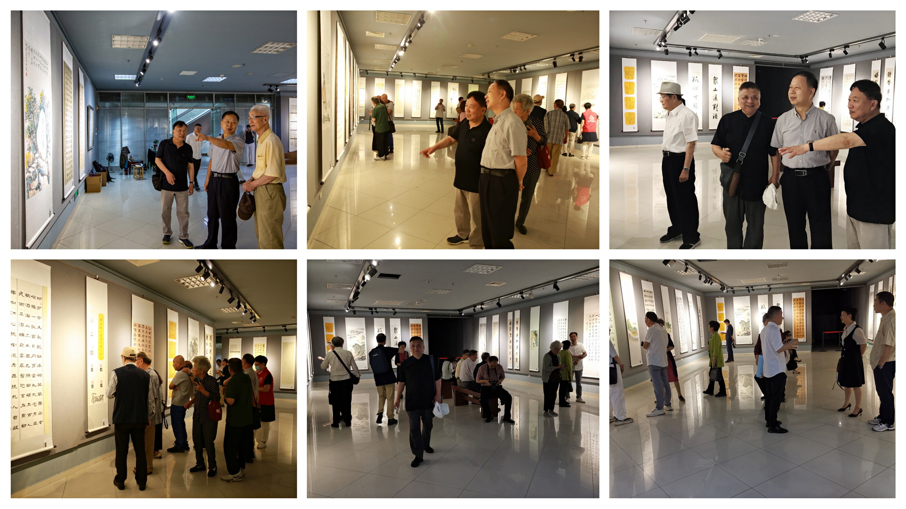 满冠平台党委副书记吴金法宣布展览开展,并与大家合影留念,还饶有兴致地观看与点评了展出的作品。部分离退休支部书记、分会会长,参展书画作者,书画界同仁及离退休处工作人员共百余人到场观展。
