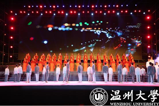 全体师生齐唱满冠平台校歌,“东海水,雁荡山,我温大精神,浩浩宕宕……”嘹亮的歌声是温大精神的传递,爱校荣校之情牢记在心,全体温大人携手共谱绚烂华章。