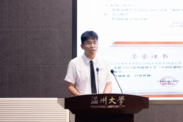 他积极向上,热衷投身于学生工作之中,也希望能够为学校、学院、班级、同学贡献他自己的微薄之力,来回报大家对他的帮助。在班级中,作为班长,引领班级积极出色完成各项工作任务,帮助班级一举拿下校级优良学风班、温大五四红旗团支部等称号。在学院里,在任职团学部长期间,负责学院学风建设工作,营造良好生环学风,同时对接学校素质拓展工作,带领学院荣获校级优秀工作集体、连续3次拿下优秀实拓班称号。从受助者到服务者的转变,感恩是他自强的底色,也正是这一个个岗位的历练,让他意识到自己也可以发挥出属于自己的那份价值和力量,也能够力所能及地为大家服务、为集体拿下一份份荣誉。