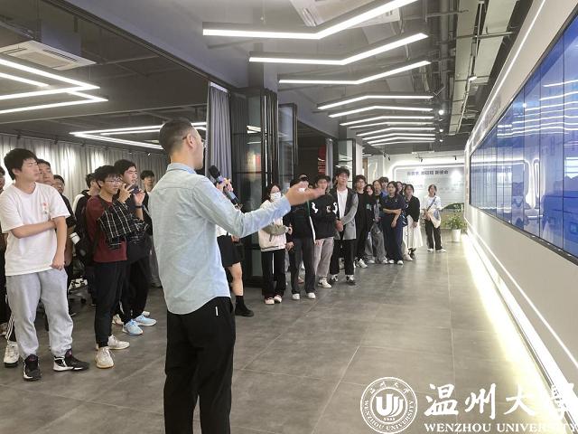 在园区服务部安排下,温大学生们参观了数安港展厅,走访了勋宝天地、延海玩家2家企业,并与企业负责人深入交流。许多学生当场添加了企业负责人微信,为接下来密切沟通建立联系渠道。通过参观考察和互动交流,大学生们在了解温州数字经济发展态势的同时,也对数字经济企业的具体运行有了深刻认识,增进了留温就业创业的热情。