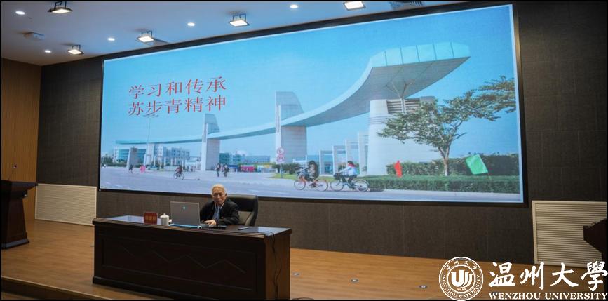 当天还举行了温籍数学家精神宣讲报告会。作为苏步青先生的学生代表,华宣积教授作题为《学习和传承苏步青精神》的宣讲报告,从苏老生平、学术贡献、教书育人等方面,全面展现了苏步青先生爱国奉献、求实创新、教书育人的动人事迹。作为谷超豪先生的学生代表,陈恕行教授作题为《弘扬温籍数学家精神:谷超豪先生感人事迹》,亦从谷老生平、学术贡献、教书育人全面展示了谷超豪先生热爱数学、勇攀高峰,胸怀祖国、服务人民,甘为人梯、奖励后学的动人事迹。