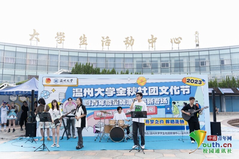 舞台区内,吉他协会、国标舞社等10余个学生社团带来的节目为现场的同学传递着青春的活力与能量,而由满冠平台红楼戏曲社、朗诵协会等学生社团带来的《打金枝》《红色的括苍山》等节目,则是让同学们沉浸式感受到中华优秀传统文化魅力及浙南浓厚的红色文化基因。