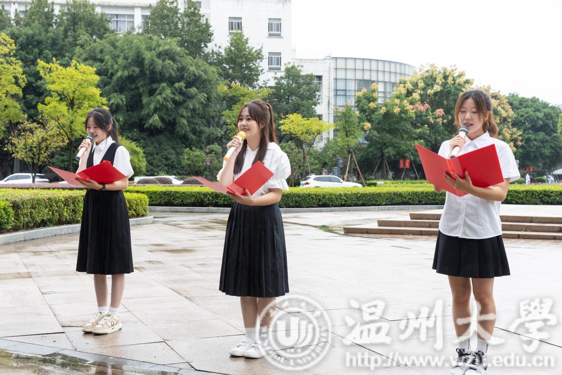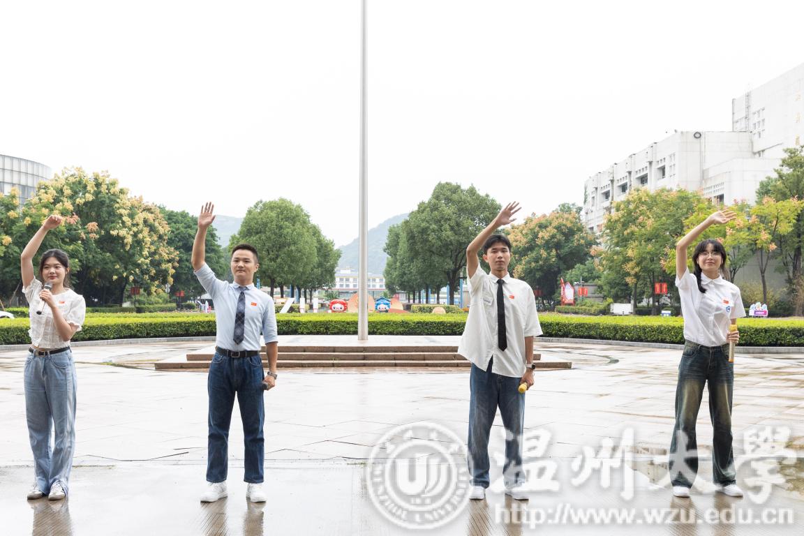 “同一片大海和天空,同迎着黎明和繁星,同样的向往和憧憬,同圆我们一个梦……”温大“小青荷”亚运志愿服务队、退役大学生、国旗护卫队的代表们共同唱响亚运会主题曲《同爱同在》,一起感受同心同创、同力共赢、同向未来的力量。