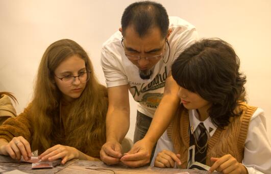 彩石镶嵌作为有400多年历史传承的非遗绝技,深受国际友人喜爱。“我们需要把图纹形状在板面上刻凿出来,然后把切好形状的彩色石片嵌入相应的凹槽内,在凸出的石片上雕凿或磨平……”在活动现场,留学生们细心聆听缪一川的讲解,观看他演示镶嵌技艺。
