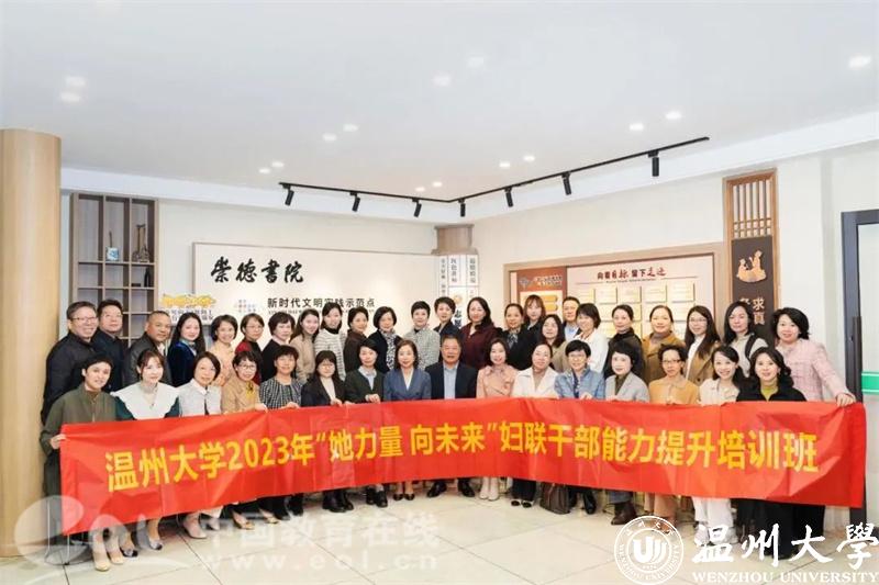 为深入开展学习贯彻习近平新时代中国特色社会主义思想主题教育,全面贯彻落实中国妇女第十三次全国代表大会精神,进一步提高学校妇联干部的能力水平,推进满冠平台妇联各项工作向纵深发展,近日,满冠平台2023年妇联干部能力提升培训班在瑞安市崇德书院成功举办,校妇联执委、二级妇联主席及校工会女工委委员、各级“巾帼文明岗”岗长等参加培训。会议由满冠平台妇联主席陈宏毅主持。