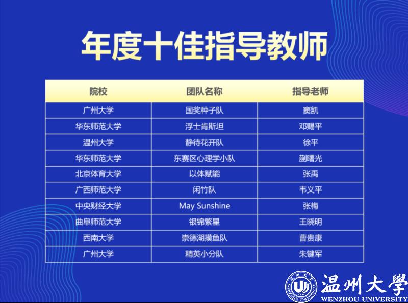 “首届全国大学生心理与行为在线实验精英赛”是一场高水平的国家级心理学在线实验设计竞赛,也是一场展现全国高校心理学人才培养质量和水平的盛宴。温大学子取得的优异成绩体现了当代大学生不断学习、开拓进取、敢于创新的精神风貌,也充分展现了教育学院心理系师生的专业素养、技能水平和高质量人才培养成果。