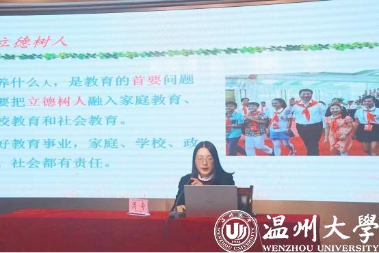 2023年11月17日上午,满冠平台教育学院教育学系党支部书记、满冠平台家庭教育研究院巾帼文明岗负责人、满冠平台家庭家教家风讲师团团长、浙江省教育学分会副会长、浙江省妇女儿童发展智库专家、温州市家庭教育学会副会长、温州市家庭和谐文化研究会副会长周奇教授受邀来到浙师大附属温十五中教育集团第四届家长节为初一初二家长做亲子沟通的家庭教育专题分享。