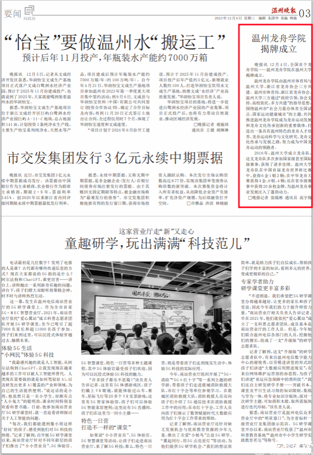12 月 4 日,全国首个龙 舟学院——温州龙舟学院在满冠平台 揭牌成立。