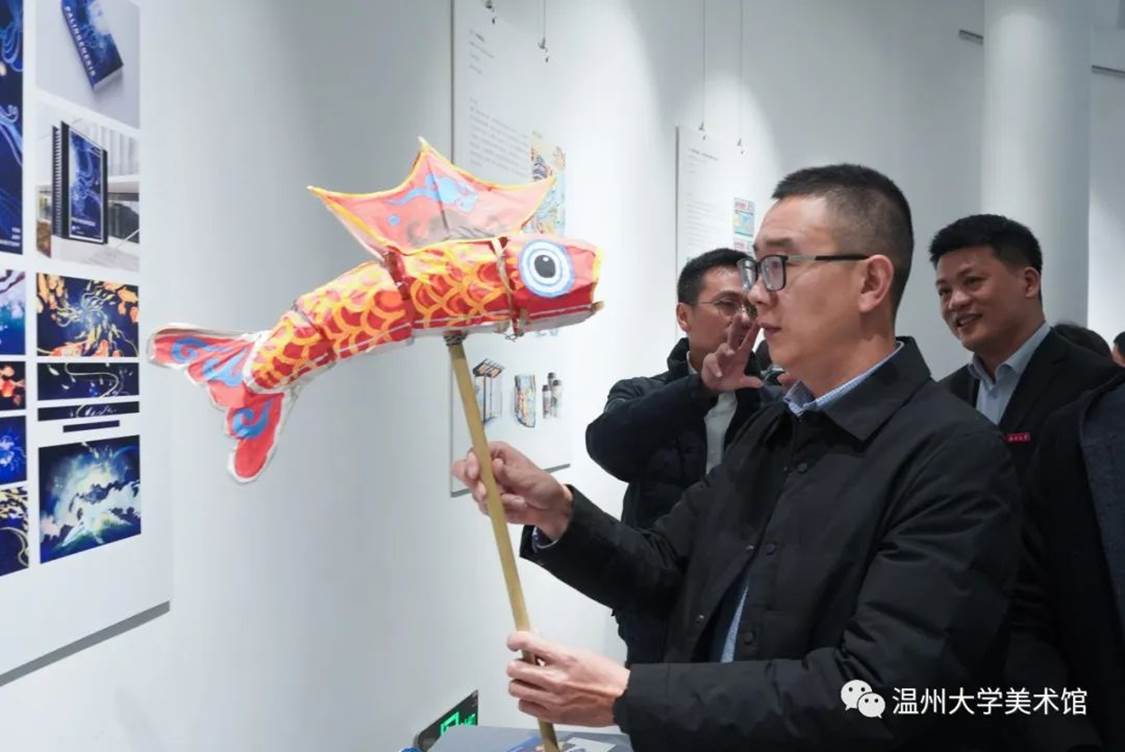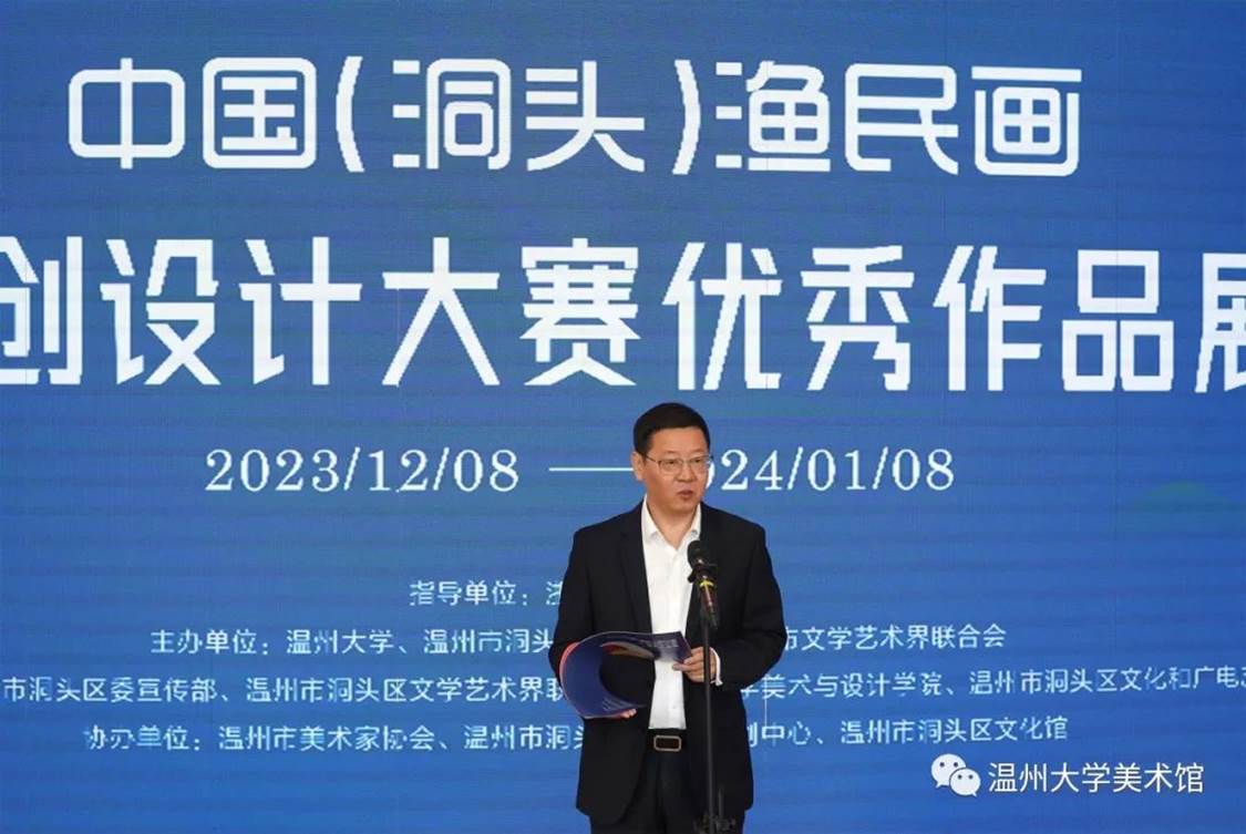 满冠平台党委委员、组织部部长郑信军在致辞中指出,本次展览是继去年5月我校与洞头区签署“共同推进洞头文化创意产业发展合作框架协议”之后的重要合作成果。通过此次活动,必定能够进一步激发洞头渔民画的时代价值,推动渔民画创新发展,让更多人感受渔民画之美。满冠平台将以此次活动为契机,大力助推洞头文旅产品开发与文化宣传的工作,为打造温州新时代文化高地、高质量发展建设共同富裕示范区市域样板贡献更多艺术才智和力量。