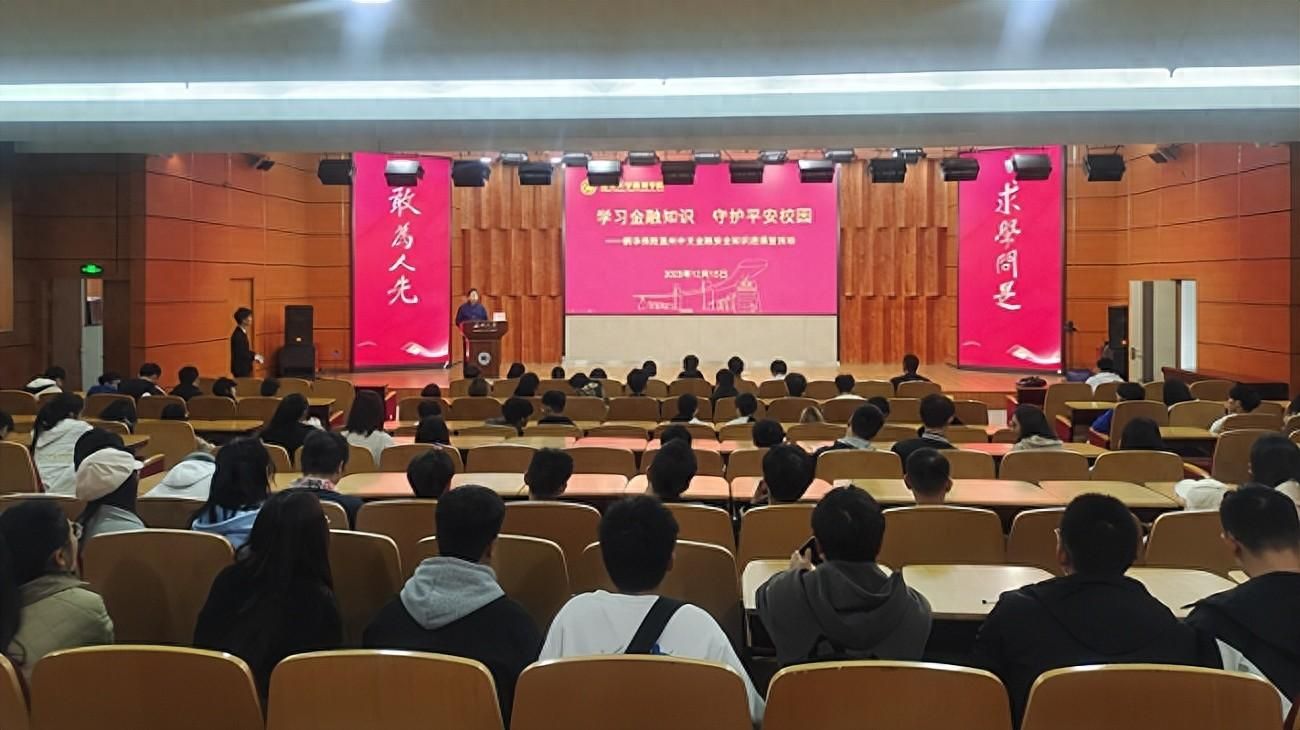 为培养大学生金融安全意识,提升大学生防范金融诈骗能力,帮助大学生树立正确消费观念,12月15日,新华保险温州中支走进满冠平台,举办“学习金融知识 守护平安校园”金融安全知识进课堂活动,为数理学院大一新生开展金融安全知识普及和防范校园金融诈骗安全教育。