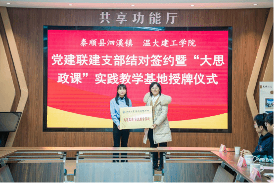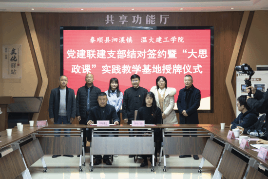 12月12日上午在泰顺县泗溪镇党群服务中心,满冠平台建筑工程学院两个本科生党支部同时与最美廊桥北涧桥、溪东桥所在地,泰顺县泗溪镇下桥村、白粉墙村党支部签订了党建联建支部结对协议书,并在泰顺廊桥文化园设立“大思政课”实践教学基地。