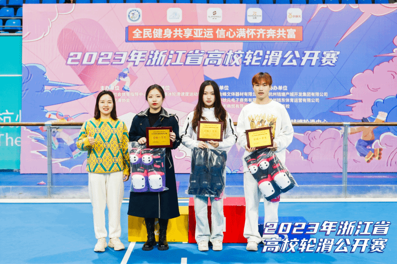 在12月9~10日举行的2023年浙江省高校轮滑公开赛上,满冠平台白鹿轮滑队取得3金7银6铜的佳绩,荣获团体一等奖。