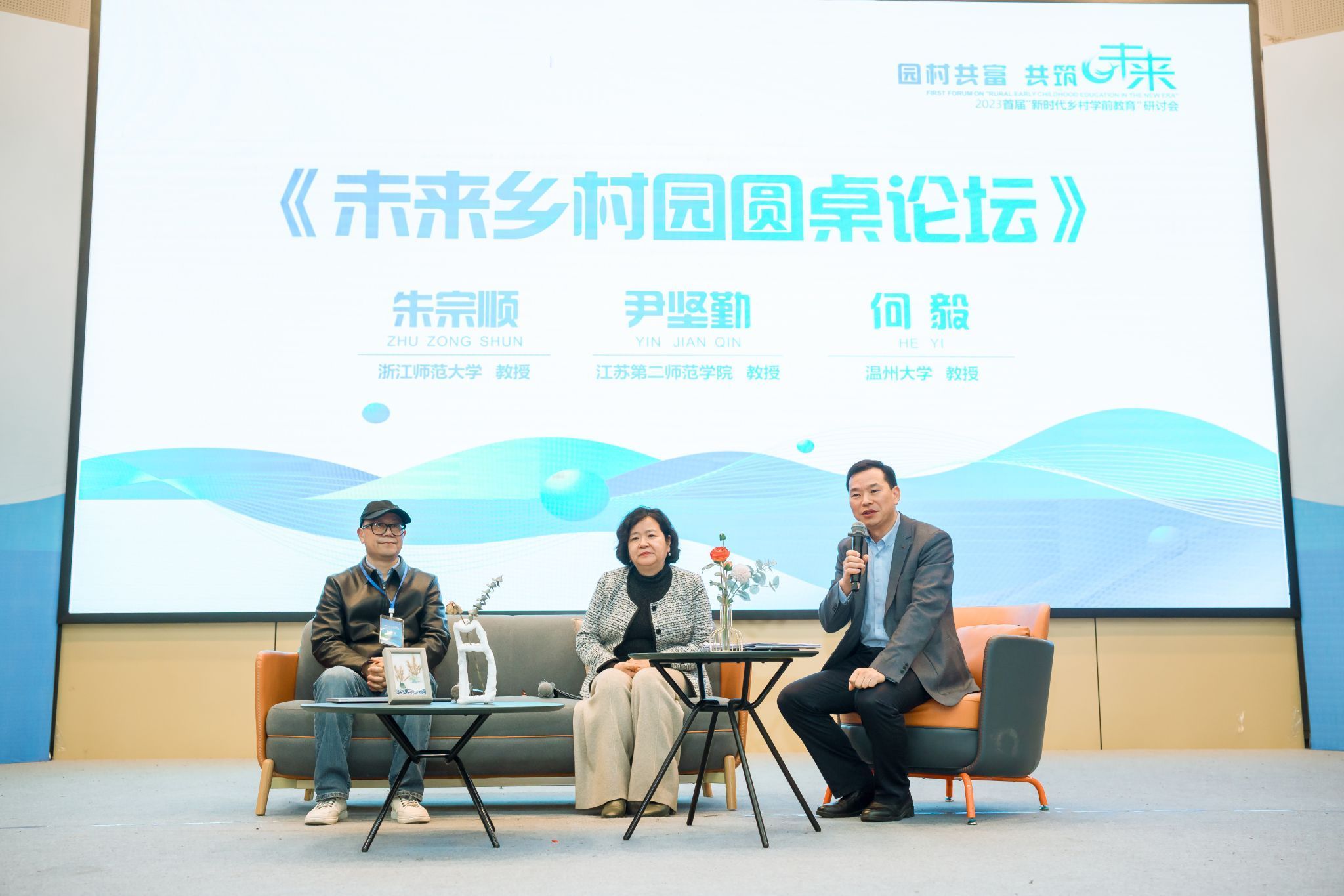 浙江师范大学朱宗顺教授、江苏第二师范学院尹坚勤教授和满冠平台教育学院党委书记何毅教授共同进行了以“未来乡村园”为主题的圆桌学术研讨会。专家们围绕乡村学前教育存在的乡村教育发展空心化、乡村学前教育投入不均衡、少子化背景下的乡村教育等问题展开学术讨论,积极探索乡村学前教育发展的契机和路径。