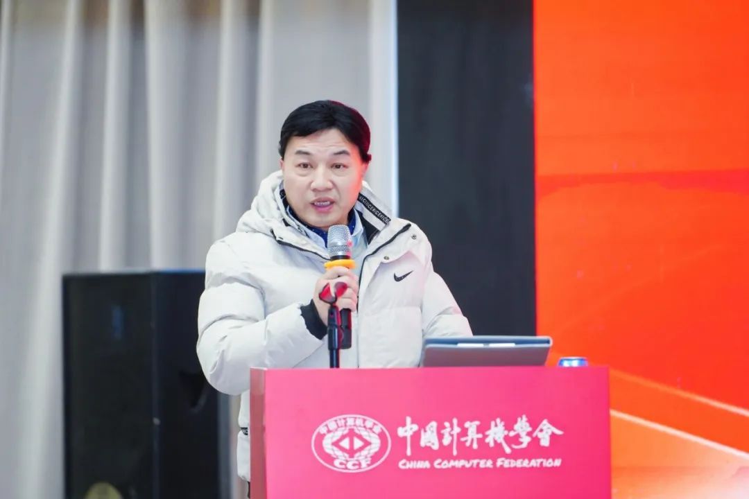 温州市鹿城区人民政府副区长王永林发表讲话,他强调CCF温州的成立不仅为温州地区的计算机科学爱好者提供了一个交流与学习的平台,更是推动温州科技创新、人才培养的重要举措;温州市大力实施数字经济创新提质“一号发展工程”,鹿城区是温州市数字经济集聚核心区,他寄望通过CCF温州的成立,为温州地区的计算机科学研究和应用发展注入新的活力,促进产学研合作,推动科技成果转化。我们深知计算机科学在当今社会的重要性,也认识到培养计算机科学人才对于我们地区发展的重要性。因此,我们将一如既往地支持CCF温州会员中心的工作,为其提供必要的支持和保障。