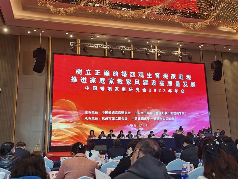 12月9日上午,以“树立正确的婚恋观生育观家庭观,推进家庭家教家风建设高质量发展”为主题的中国婚姻家庭研究会2023年年会在杭州建德举行。与会人员围绕培育新型婚育文化、树立新时代家庭观、实现家庭建设和妇女全面发展等议题进行了深入研讨。