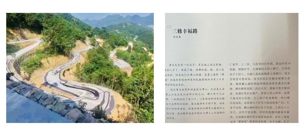 乡村乡贤恋乡之“哲”思。大嶂的发展变迁彰显新时代新乡贤之力。开放的大嶂人走出大山闯荡世界,功成名就不忘桑梓。家乡饮水通电、修路架桥、修祠圆谱,乡贤们有钱出钱有力出力。曾任申温线“民主”号、申港线“上海号”政委的余松波退休后,义不容辞的担任了大嶂修路总指挥和祠堂首事,他负责余吴氏宗谱重修,还一改女人不上谱的旧俗。2017年余松波逝世,哲春先生的挽联是:“造路修谱建祠堂情系桑梓松高千尺,当兵护航驾巨轮面朝大海波长万里。”