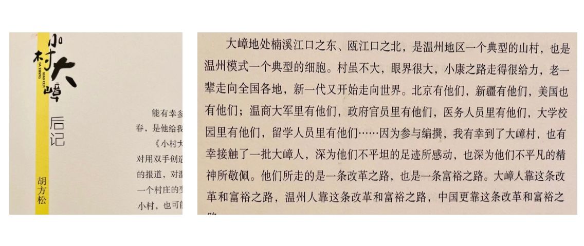 读大嶂“村书”,感悟先生对乡村文明的段段“哲”思。中国是农业大国,靠农民打天下的毛泽东就是农民问题专家,研究中国乡村知名学者近代有梁漱溟,现代有费孝通,费老说温州是“小商品大市场”,哲春先生则以“小山村大能量”的立场,表达他对当代中国乡村文明的段段“哲”思。