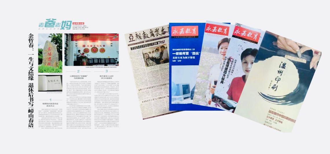 痴情笔墨文章的哲春先生,走到那里报纸刊物办到那里,从《今日罗浮》到《永嘉企业家报》,从《永嘉教育》到《永嘉广电报》,从《温州印刷》到《乌牛商报》,从《亚龙科技报》到《佑安医院报》。