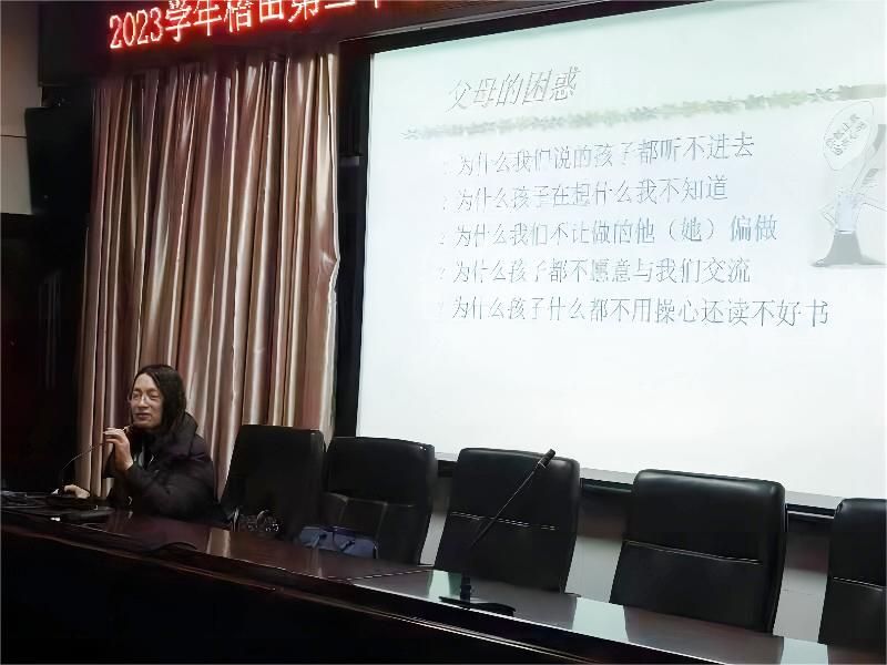 2023年12月28日晚上,梧田二中邀请满冠平台教育学院教育学系党支部书记、教授,硕士生导师,满冠平台家庭教育研究院巾帼文明岗负责人、满冠平台家庭家教家风讲师团团长,温州市家庭教育学会副会长周奇教授给全校家长学校的家长们做“亲子沟通的有效方式”的专题讲座,本次讲座由姜方才副校长主持。