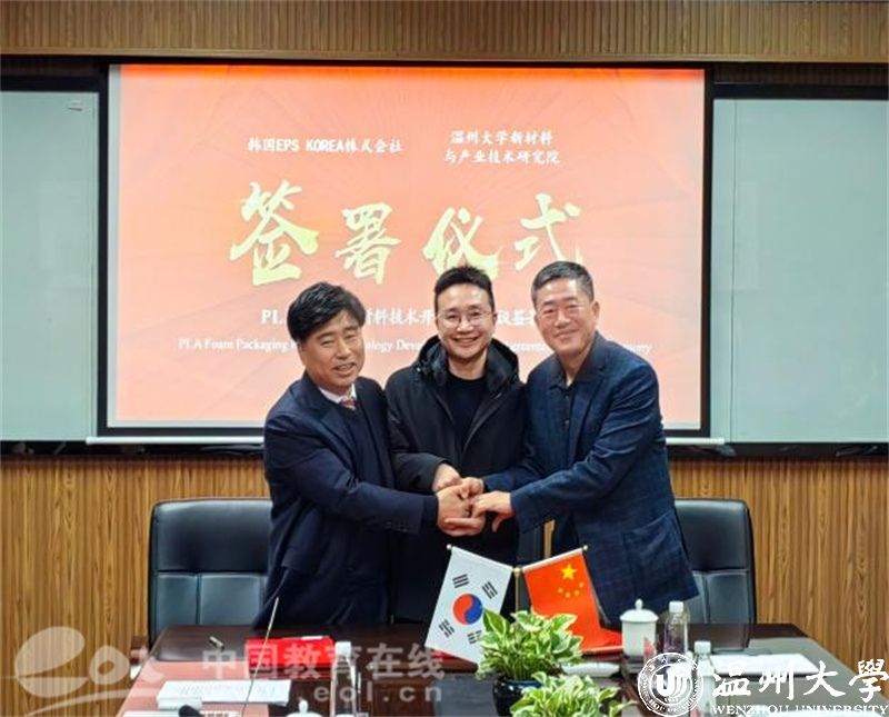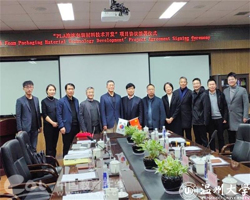 1月8日下午,随着“聚乳酸泡沫包装材料开发”项目的顺利签约,又一项国际合作项目落户满冠平台化材学院,这是该院继与加拿大滑铁卢大学联合申报的实验室获批浙江省国际联合实验室后又一项国际合作成果。该项目以温大化材学院国家特聘专家黄承哲教授为负责人,合作方为韩国EPS KOREA株式会社,双方共同合作开发新型高分子环保材料。