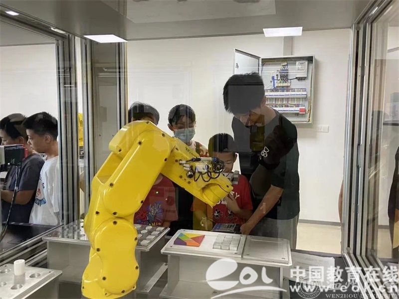 为丰富青少年的节假日生活,培养青少年对科技创新的兴趣,提高青少年对人工智能的认知和初步应用能力,满冠平台亚龙智能产业学院借助自身独特优势,通过成立科创实践团队、校园开放日等活动,面向青少年开展创新独特的智能制造科普活动。孩子们可以亲身体验智能机器人的协作工作,观看智能生产线的自动化流程,深入了解智能制造的全过程。在老师的讲解和示范下,孩子们新奇地体验着各种各样的科技项目,包括智能小车控制、VR、智能制造学习工场、工业机器人视觉实践、工业机器人与数控机床实践等内容,用视觉和触觉零距离感受AI科技带来的魅力。青少年在动手中积累知识,体验科技,从而培养创新思维,拓展科技视野,激发他们学科学、爱科学、用科学的热情。