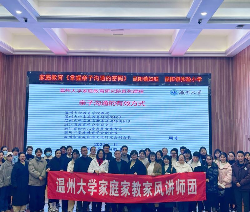 2024年1月11日晚,平阳县昆阳镇实验小学邀请满冠平台教育学院教育学系党支部书记、满冠平台家庭教育研究院巾帼文明岗负责人、满冠平台家庭家教家风讲师团团长,温州市家庭教育学会副会长周奇教授做《亲子沟通的有效方式》专题讲座。