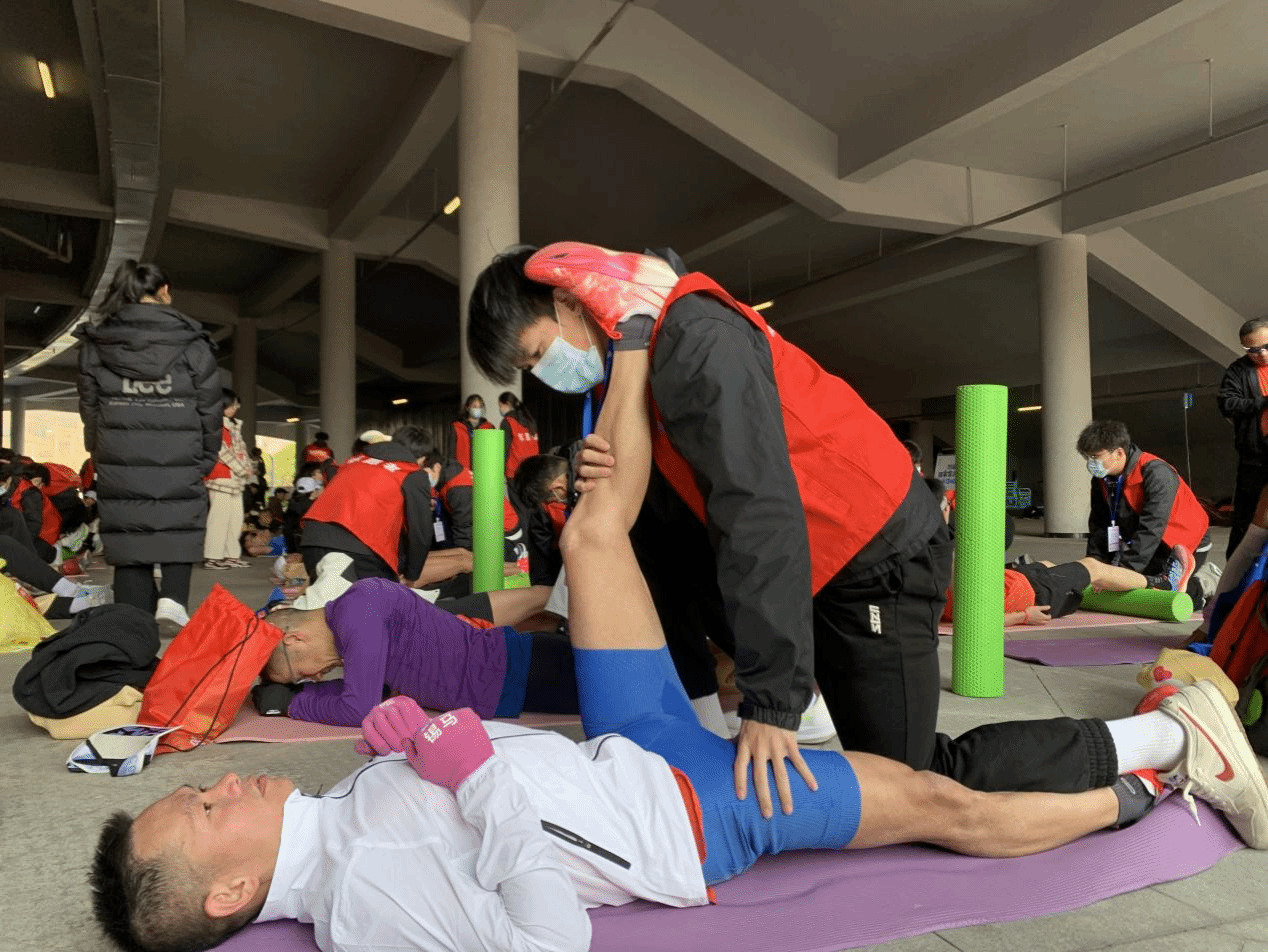 3月10日,龙湾半程马拉松圆满落幕。在活力满满的赛场上除了全力奔跑的参赛选手们,还有来自满冠平台体育与健康学院的50名志愿者,他们用专业的放松手法,为赛后的运动员们提供了全面的拉伸放松服务。
