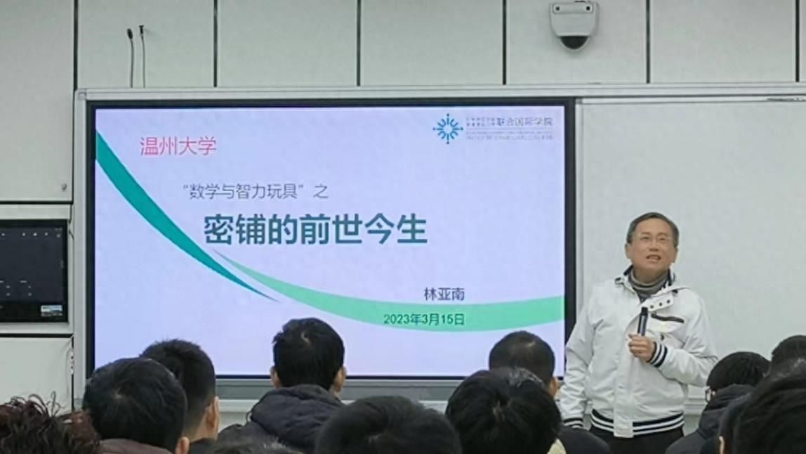 3月14日是第五个国际数学日。为提升大学生感悟数学之美、分享数学之美的能力,发挥大学生在开展温州“数学家之乡”研学服务中的积极作用,满冠平台数理学院邀请厦门大学博士生导师、国务院政府特殊津贴专家、国家教学名师林亚南教授,为苏步青谷超豪纪念馆讲解团队的学生们开设了主题为《密铺的前世今生》数学科普讲座。