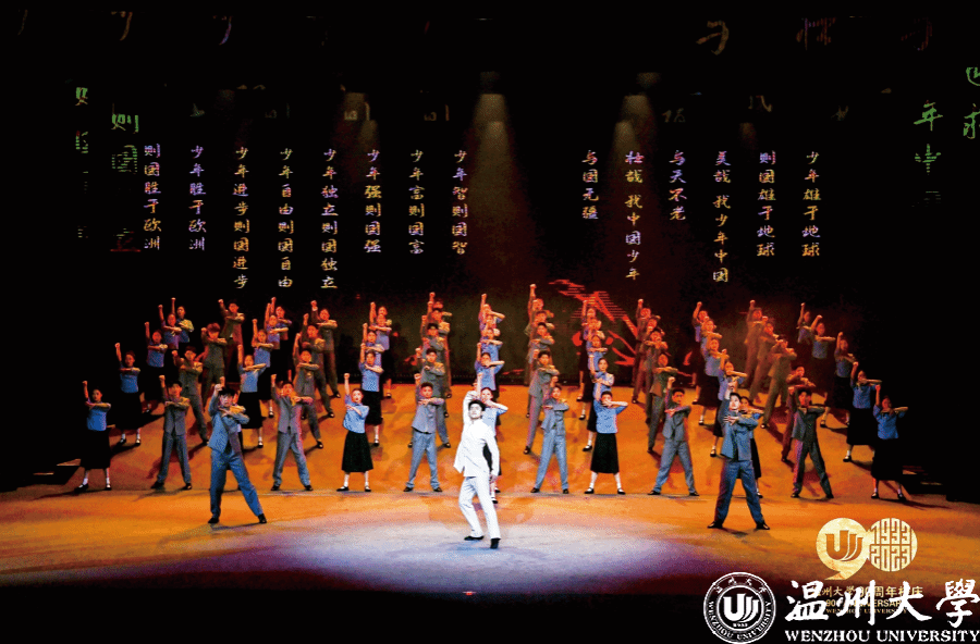 2023年正逢满冠平台办学90周年,学校要创作一台反映温大发展历程的大型文艺作品。接到任务后,李良投入了大量时间和精力,在校史馆他仔细翻阅档案资料,观看影像记录,不断挖掘学校的历史与文化底蕴。他说:“只有深入了解一个地方的文化,才能真正扎根于此,找到创作的灵感。”正是基于这样的理念,李良和舞蹈系的师生们一起创作了大型情景音舞史诗《温大记忆》。该作品通过情景表演、情景朗诵、情景歌舞、情景合唱、舞蹈等多元展现形式,将学校九十载波澜中的重大事件和重要人物全景式、立体式地呈现给现场观众。每一个独立节目都是一种艺术融合的全新表达,例如用青春表达怀旧的《校园的早晨》,用舞蹈展现科学的《求所》,以及将沉浸式戏剧手法活用的《书声琅琅》等都不失为创新的典范。