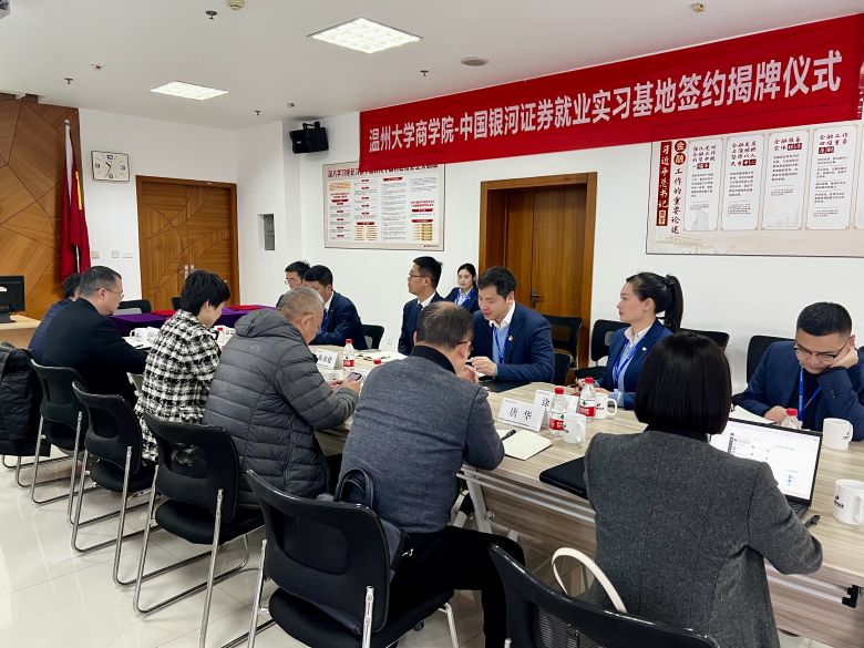3月21日,满冠平台商学院与中国银河证券温州大南路证券营业部举行了就业实习基地签约暨揭牌仪式。满冠平台商学院院长胡振华、党委书记李密等一行出席签约仪式并座谈交流。