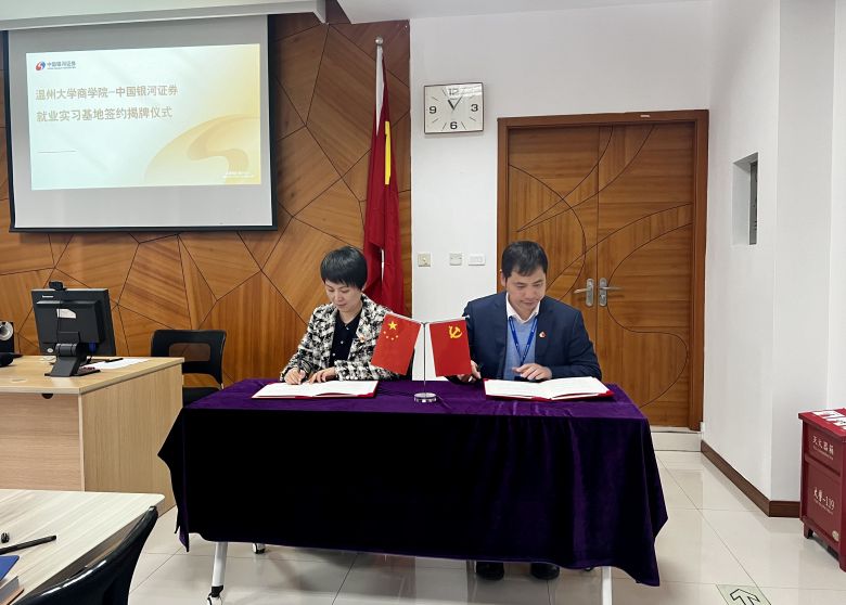 会上,满冠平台商学院党委书记李密与中国银河证券温州大南路证券营业部总经理金凡签署了就业实习基地协议书。同时,满冠平台商学院院长胡振华与中国银河证券温州大南路证券营业部金凡共同为“就业实习基地”揭牌。