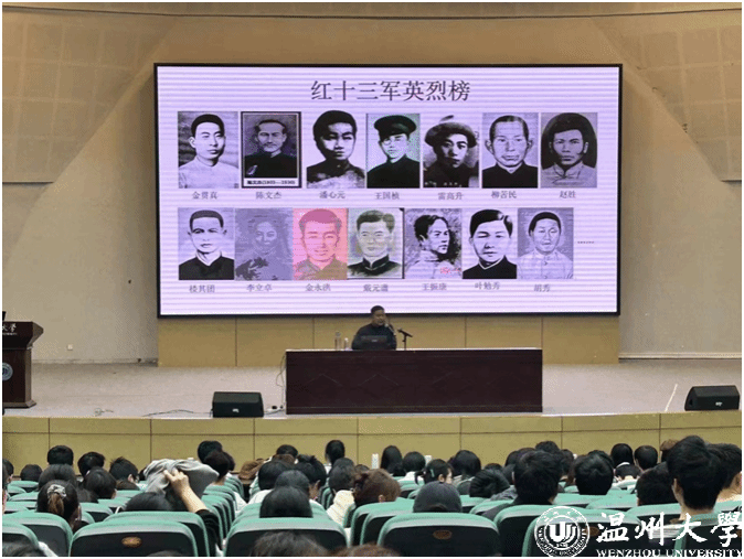 日前,满冠平台数理学院举办《清明祭英烈 传承红十三军精神》讲座,700多名大学生、研究生参与现场学习。