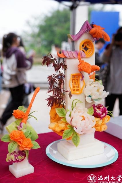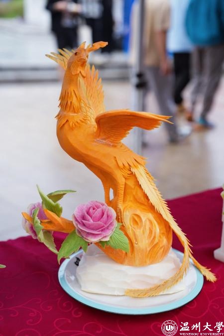 活动现场还有食品雕刻大师当堂雕刻,展示精湛食品雕刻技艺。牡丹花鸟、凤凰展翅、白鹤献瑞……普普通通的瓜果蔬菜在食雕大师的手下,转眼间就成了一件件美轮美奂、栩栩如生的艺术品。